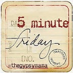 Anyway, Lisa-Jo does this thing on her blog called 5 Minute Friday. In a nutshell, bloggers from all over the world log onto her blog on Fridays and receive a writing prompt. They then write raw for 5 minutes...no editing, no rereading, no proofing. Just 5 uninterrupted minutes of writing whatever your thoughts are on the subject prompt. Then all the bloggers "link up" to her blog to share what they've written and encourage the other bloggers who have also linked up. If I'm reading it correctly, there's some way to also connect on Twitter with the hashtag #5MinuteFriday.